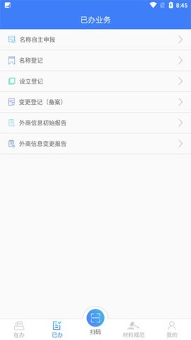 能够在手机中去办理不同的营业执照以及其他的业务办理功能,里面的功能超级丰富,有网上核准、执照发放、材料归档以及信息公示的功能。