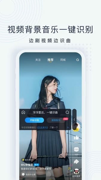 里面有免费的听歌识曲以及其他的功能可以去体验,打开短视频就可以轻松识别不同的背景音乐去使用。