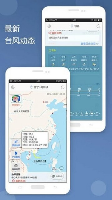深圳台风网app是一款在手机上就可以查看相关天气以及台风轨迹的手机信息,可以查看最新的天气预报以及其他的天气内容,还可以自动监测24小时以内的所有降雨的情况,为我们提供了最新、最专业、最详细的台风提醒服务,满足我们对于台风查询的所有需求,可以去掌握最新的台风动态,可以让我们第一手的掌握最新的台风。