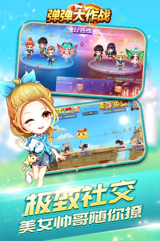 弹弹大作战手游这是一款超级真实且有趣的一款手机3D破坏的游戏,能够让玩家体验到身临其境的游戏体验,需要在游戏的操作技巧、策略选择以及3D换装以及染色等等功能可以去使用,能够让我们去里面去对角色自由搭配装饰时装,打造了真正的角色个性化,赶紧来和工会成员一起建设工会吧。